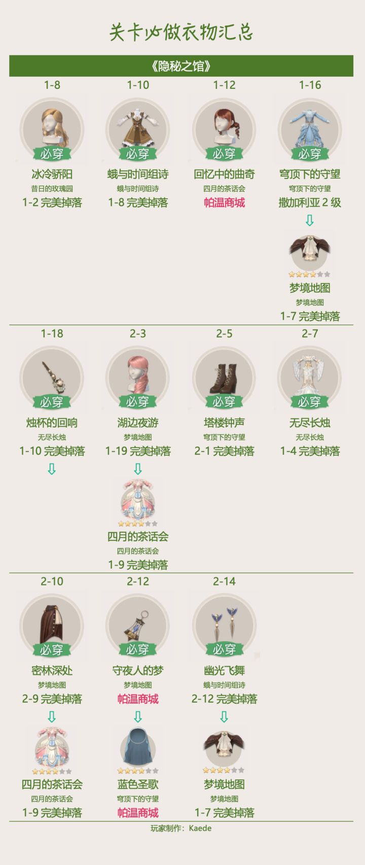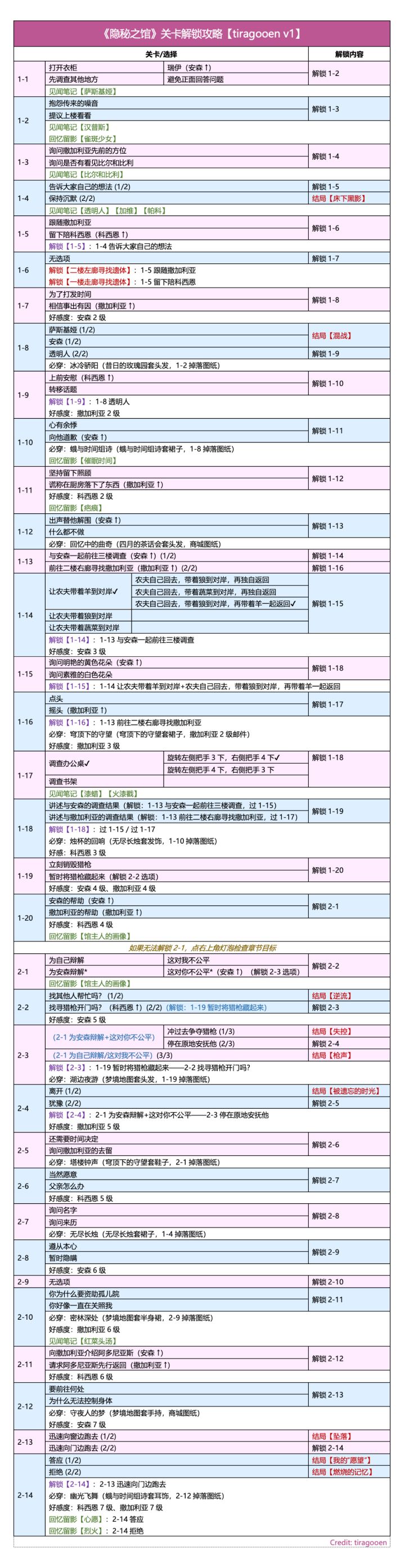 🍀《隐秘之馆》关卡解锁攻略【tiragooen版】 / 必做 / 见闻 / 留影