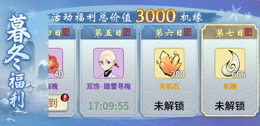 ● 暮冬福利:活动期间每日登录领取节日特礼。