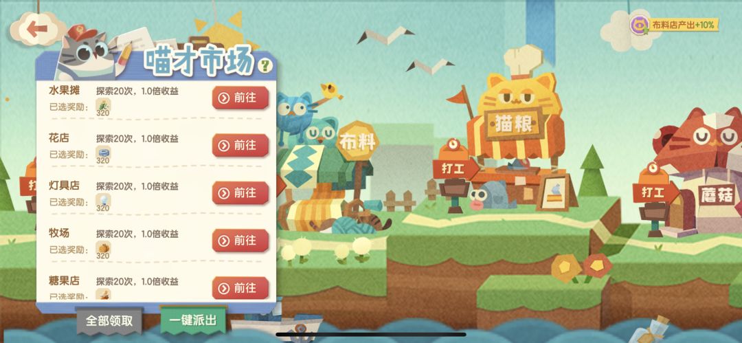 首先先给大家看一下我的打工配队收益情况,共41只猫(大佬猫咪更多的情况下收益会更可观,建议不要用借来的猫咪,不然到时候还回去了你的队伍就散了乱了)