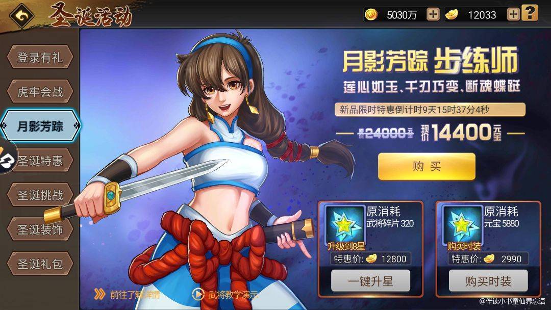 新武将闪亮来袭向来是庆典活动的绝对主角,本次步练师同样有这样的礼遇。反击之刃步练师,独有的防反机制,带来全新的体验,可以抓住转瞬即逝的战机,给予对手致命一击的快感,光从简单的介绍便可看出,步练师强于PVP,热衷于排位的小伙伴们,步练师值得拥有哦(只要不是于禁那种滑铁卢)。元宝充裕且任性的玩家大可活动期间率先入手体验为先,而我们平民玩家该如何应对?书童作为月卡族玩家,如果能白嫖一些免费碎片,还是建议大家把握官方的福惠相赠的活动后,在最后两三天再考虑是否购买剩余碎片寻求第一时间招募。接下来书童和大家初步探讨一下步练师在圣诞节期间的招募省钱之道。