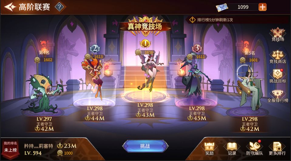 高阶联赛只有真神一个段位,规则与其他两个联赛有些不一样哦!