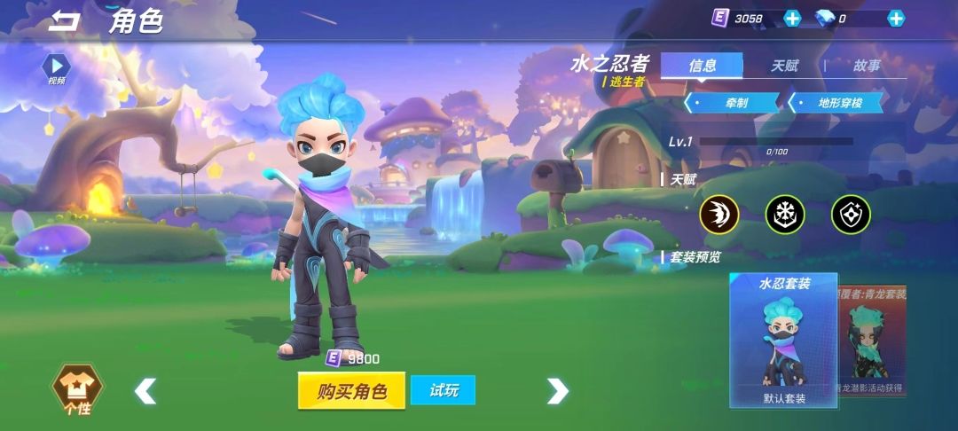 水之忍者这个角色也是9800点券可购买到的,喜欢的友友可以攒点券购买获得,他还有一个好听的名字,叫泷,性格中二,桀骜不驯。背景故事:很多年以后,寂寞的忍者大师最后悔的,便是当年心血来潮将几套漫画带回了与世隔绝的小岛。此后他的得意弟子“泷”会在修炼时大声喊出招式的名字,偶尔还念叨着要为人类献出心脏。终于在一天拂晓,充满自信的蓝发少年不辞而别,踏着浪花迎向新的世界。“不去拯救世界的日子,真够平淡啊”水之忍者天赋天赋技能有3种主动天赋-水龙术:泷变成水浪冲向一个方向,期间可以穿过地形,并使泷的下次攻击可以施加寒冰印记;60/52/44/36秒储存1次,储存上限3次;消耗60金币。被动天赋-秘技·寒冰领域:水龙术会生成一片寒冰领域,领域内的敌人会随时间被施加寒冰印记;第3层印记会触发冰冻效果,使敌人无法攻击与移动;领域存在3/3.5/4/5秒;被动天赋-护身镖:泷在使用水龙术期间,会获得一个可抵挡33/38/43/48点伤害的水晶飞镖。03卡组搭配