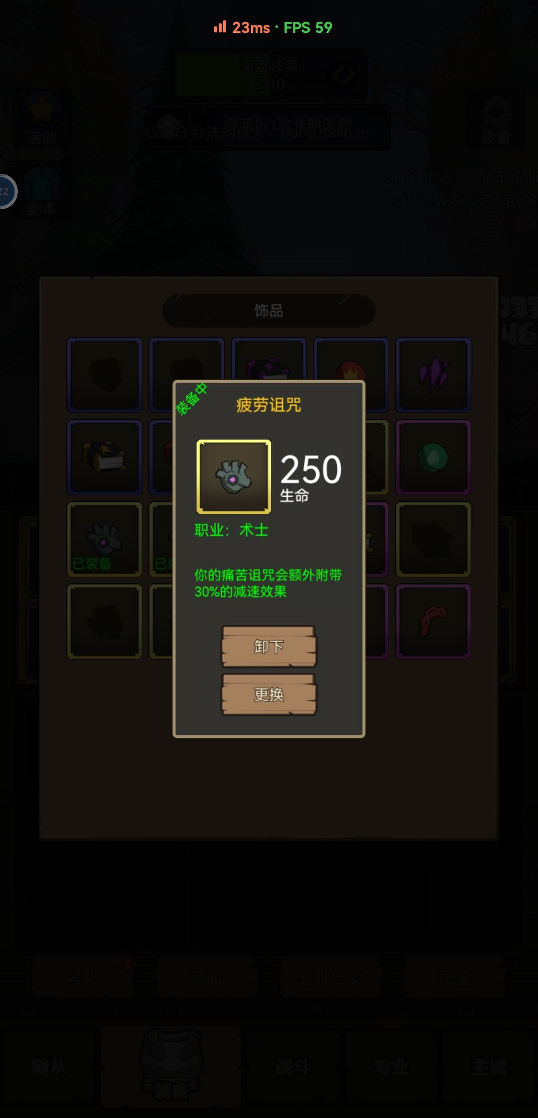 现在说说随从吧女妖之王希瓦,应该算是最好用的随从了一手恐惧完爆大多数随从,可是需要符文石抽。新萌的符文石还是很紧张的所以卡关的时候别刷副本搞装备能爬塔就爬,爬到10层后可以用票扫荡,然后英雄副本也别刷,5级宝石一套可以给所有职业用所以就做最通用的紫橙红吧换角色时记得脱下来。票就用来打首领刷传奇宝石,每个传奇宝石和饰品都能加本职业250血量上限,副本就每天免费的白嫖下。对了随从金币随从里好用就德鲁伊的玛法里奥有个破甲和缠绕,或者冰法吉安娜能减速有aoe,当然前期能拿到的最好用的是符文图腾需要邀请奖励有3个号100级,技能有回春术和虫群。特别是虫群可以减对面20%的命中还是持续伤害技能可以吃到痛苦无常等专精技能的效果直接让对面永久掉20%同时自己还能多回血和暗影箭打的更疼。