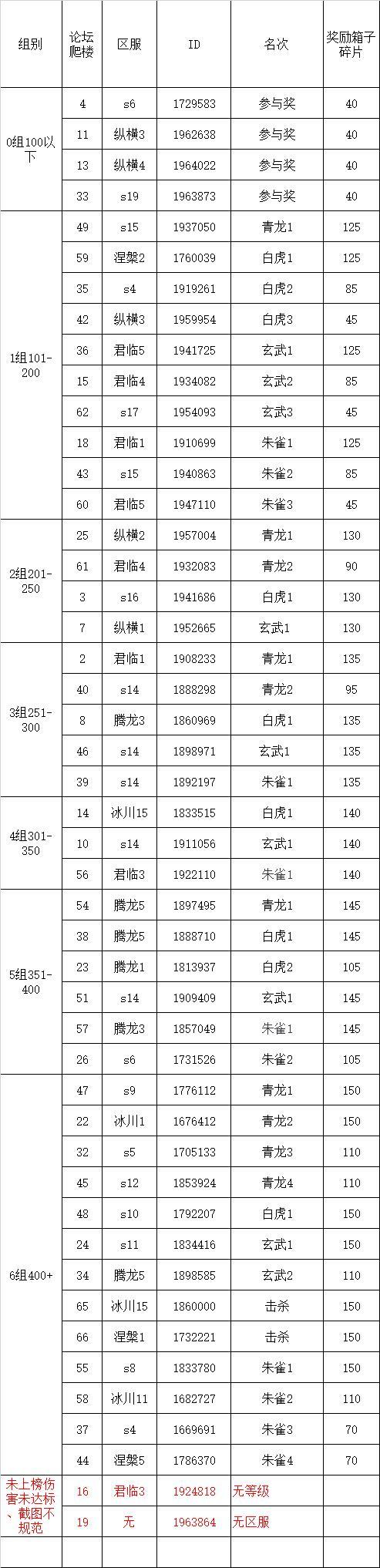 部分玩家截图不规范,故取消上榜,奖励顺延至下一名,请各位玩家规范截图,如有疑问请联系客服