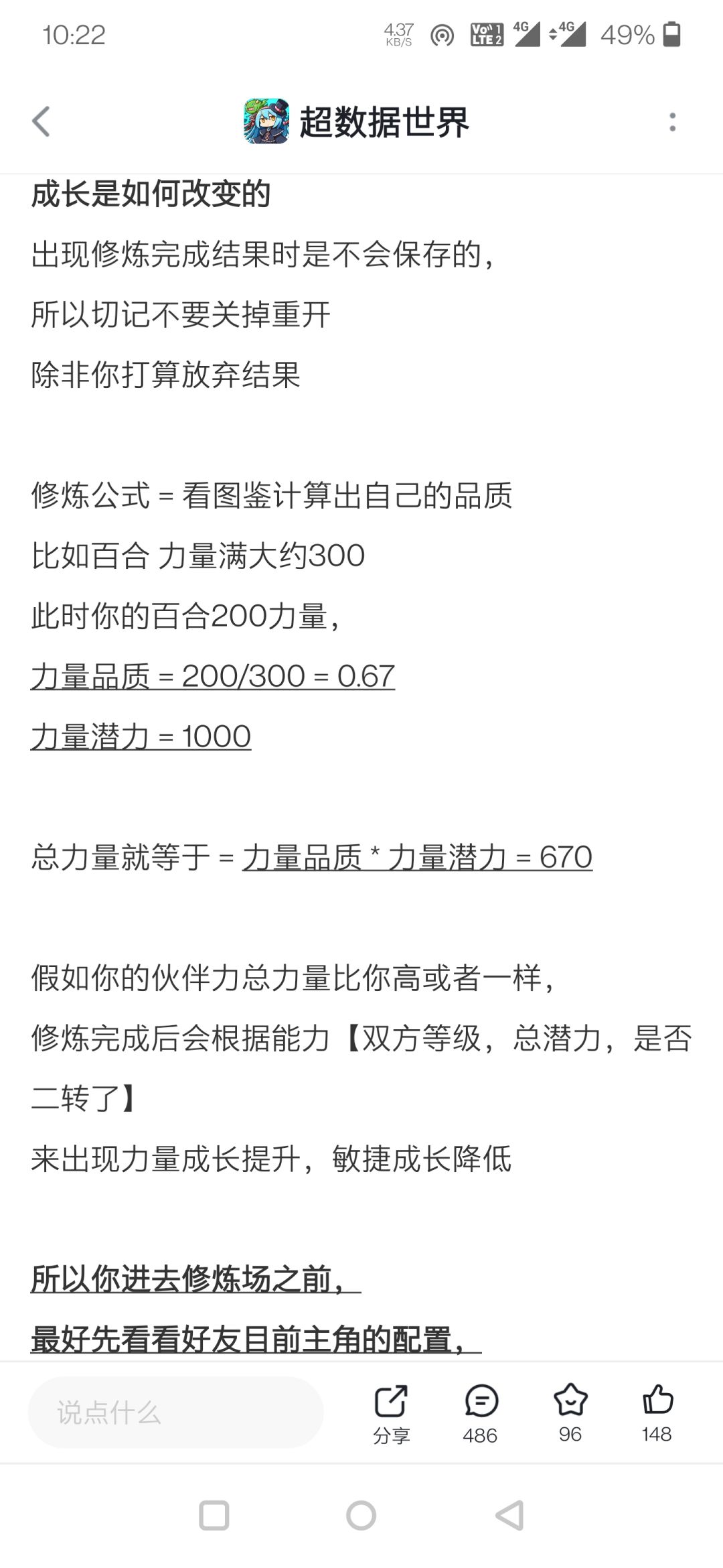 众嗦粥滋修炼能改变人物个性,让人物增加上限,根据st给出的公式和个性表,知道每提升0.6力体(敏智)上升一个个性,绿字也会相应变化,搭配上补正,上限会更高。修炼的速度跟修炼人物绿字,加点,稀有度有关,如果对面一个双5物抗绯,那你的修炼就会猛升,因为修炼中品质低的也就是个性低的提升会更多,用品质差距提升会很明显。然后是加点,修炼中什么加点多就降什么,所以为了稳升一般全能加点,对面什么加点多自己就升什么。其次是绿字,什么绿字高就容易降什么,对面什么绿字高就加什么。最后是气息,白字会影响修炼成果,领修炼时把气息下了去地图逛一下再领修炼更好,带气息领修炼很不稳定,有时候带什么气息什么气息就加的多,有时候相反。个性的计算