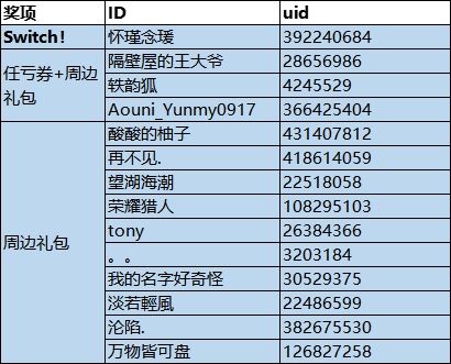 【中奖名单】