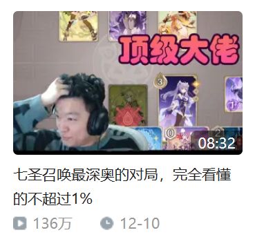 虽说以《原神》现在这个“流量密码”的地位,哪位主播突然播一下我也不会意外,而且炉石主播最近确实有强烈的下岗再就业需求,但是举个不那么恰当的例子,在《原神》推出躲猫猫、塔防、尘歌壶玩法的时候,并没怎么见到有其他游戏的主播“入坑”,七圣召唤到底有什么特别之处?