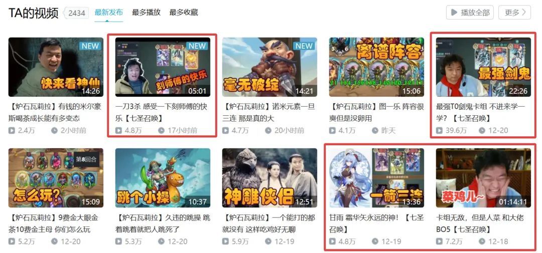 来看看知名炉石主播瓦莉拉的B站空间,好家伙,将近一半是七圣召唤。