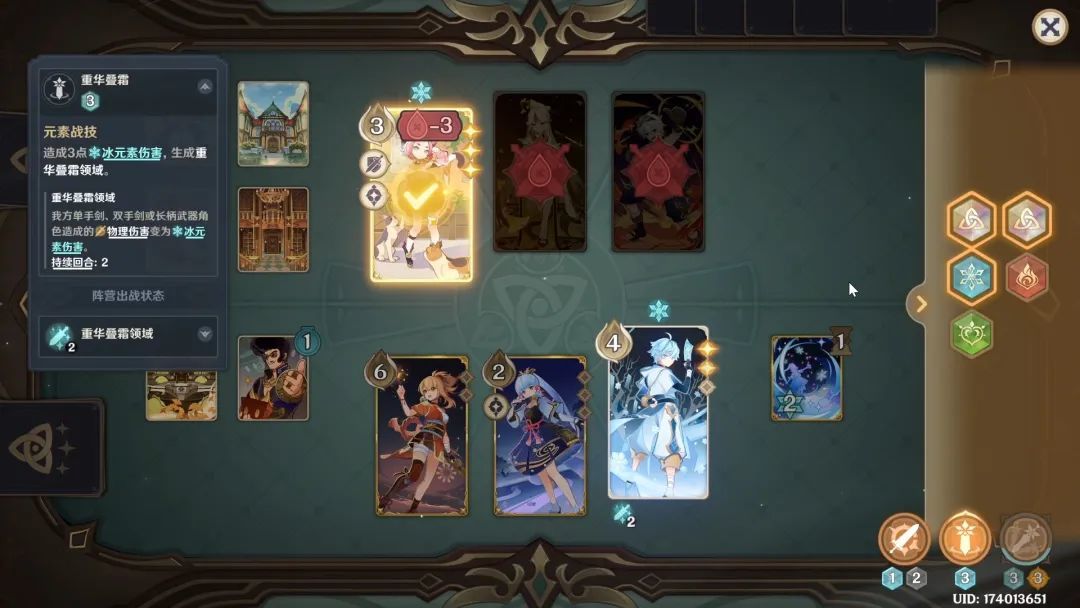 是不是已经被绕晕了?那就对了。七圣召唤毫无疑问是目前《原神》游戏里上手门槛最高的一个玩法,不过好在七圣召唤和《原神》里其他小游戏一样,都是一看教程就晕,一玩就明白,打个三五把之后对于基础玩法也就有点概念了。