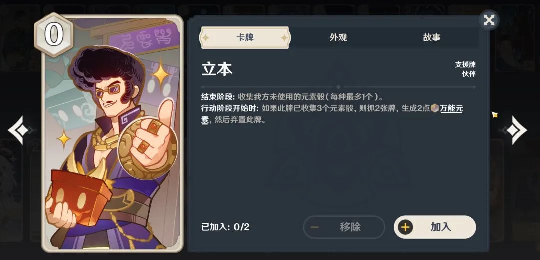 不仅仅是角色牌,连支援牌、装备牌也做到了高度还原。比如旅行者们很熟悉的立本爸爸,在《原神》里能回收玩家的破烂,然后给玩家珍贵的原石(十连后换成其他破烂)。