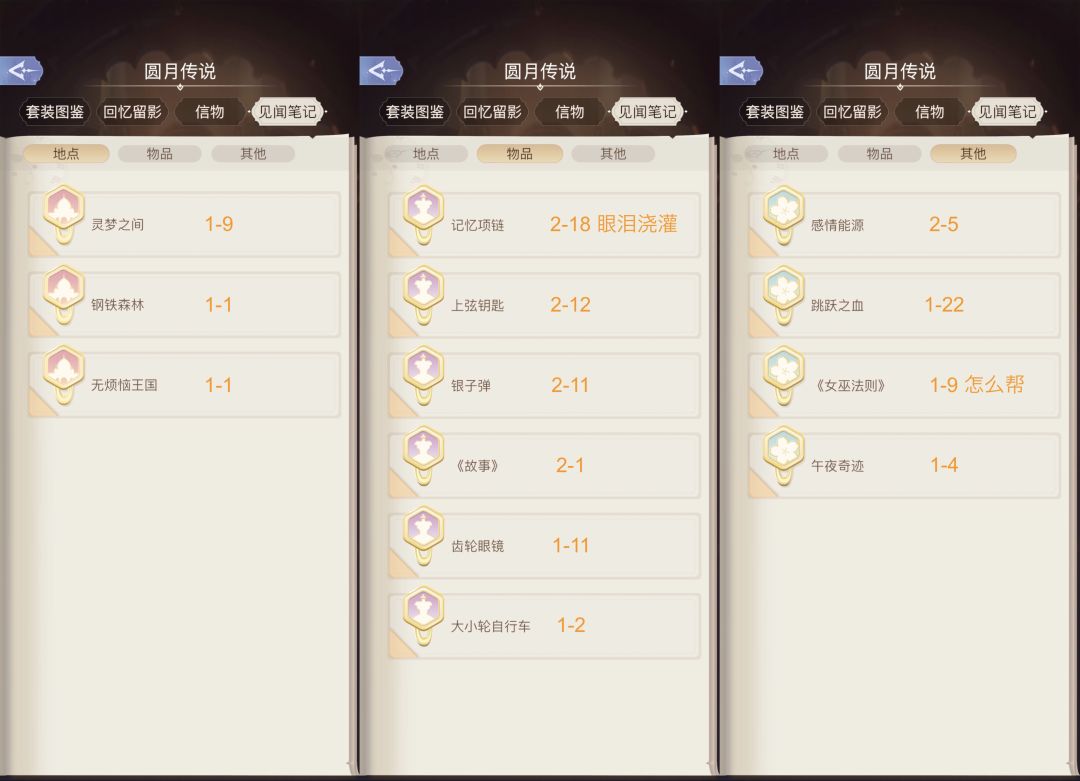 🍀《圆月传说》关卡解锁攻略 / 必做 / 见闻 / 留影