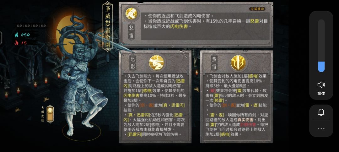 技能选择方面,雷一核心雷神之铠,雷神之刃,永劫天雷是必点的。