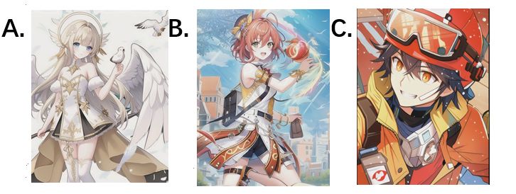 第一题 记忆是珍贵的,对于每一个人都是如此,这样珍贵的事物被损毁或是被忘却,他无法接受。虽然他只是个拥有些许修复能力的小小消防员,但也无法阻止他一遍又一遍跳入危险中,守护大家共有的记忆。这里的“他”指的是幻•22,猜猜以下哪张图是他经过AI绘画后得到的?