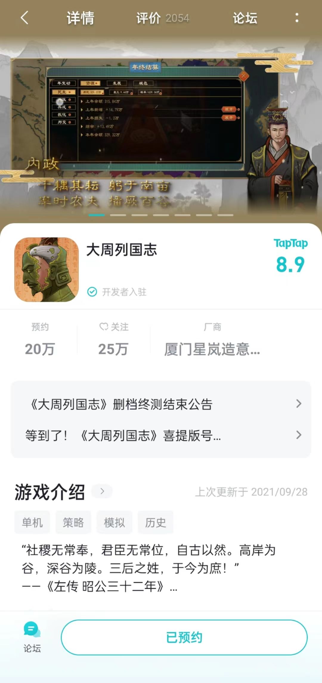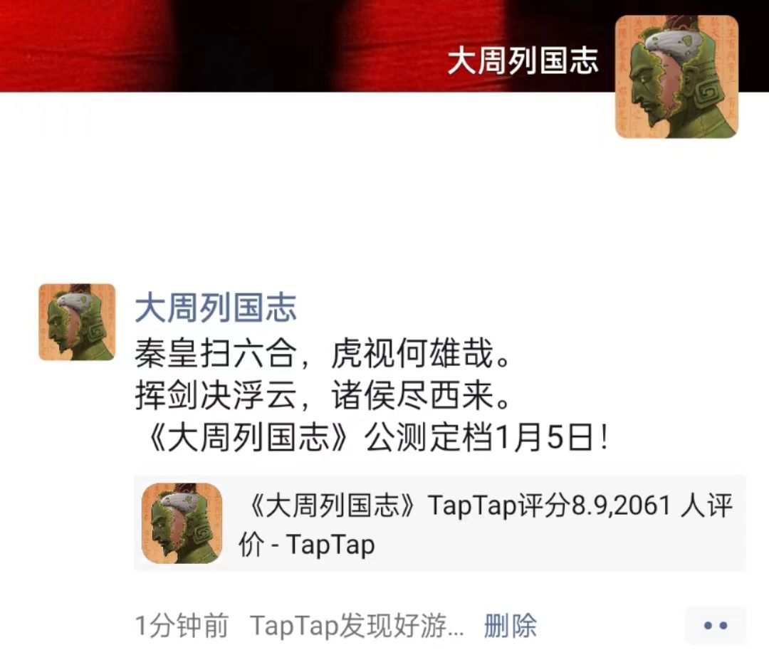 1. 在TapTap预约《大周列国志》正式服,截取预约截图;