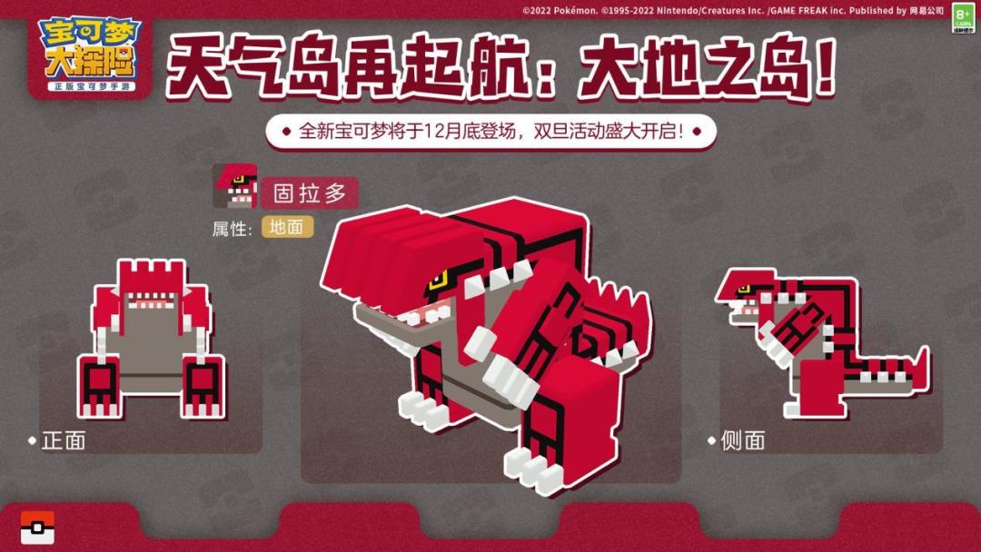 回顾探险家的探险生涯,天气岛的相关经历可谓记忆犹新。在大地之岛、海洋之岛和天空之岛上,大家也曾邂逅诸多宝可梦伙伴!此次由网易、The Pokémon Company、GAME FREAK inc.携手开发的《宝可梦大探险》邀请探险家重聚天气岛,大地、海洋、天空三个版本活动相继返场,探险家们又有机会和超古代传说宝可梦固拉多、盖欧卡、烈空坐成为伙伴啦!