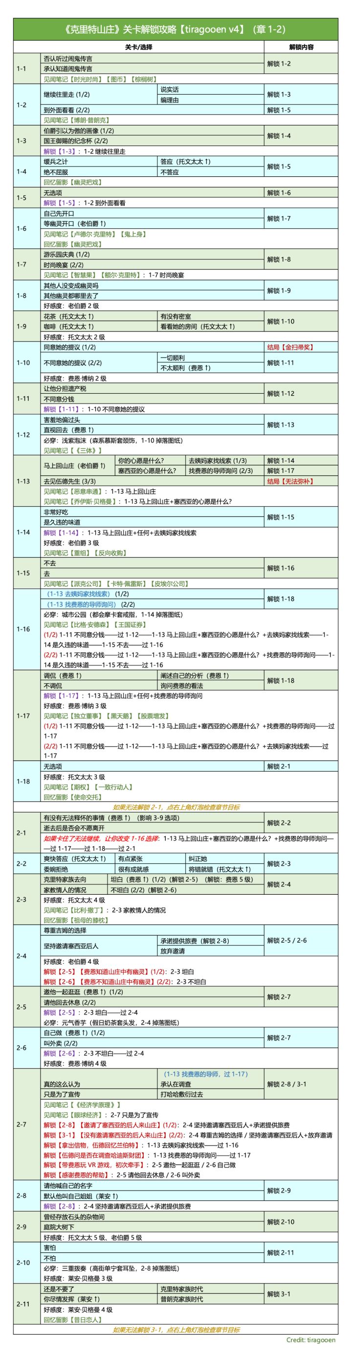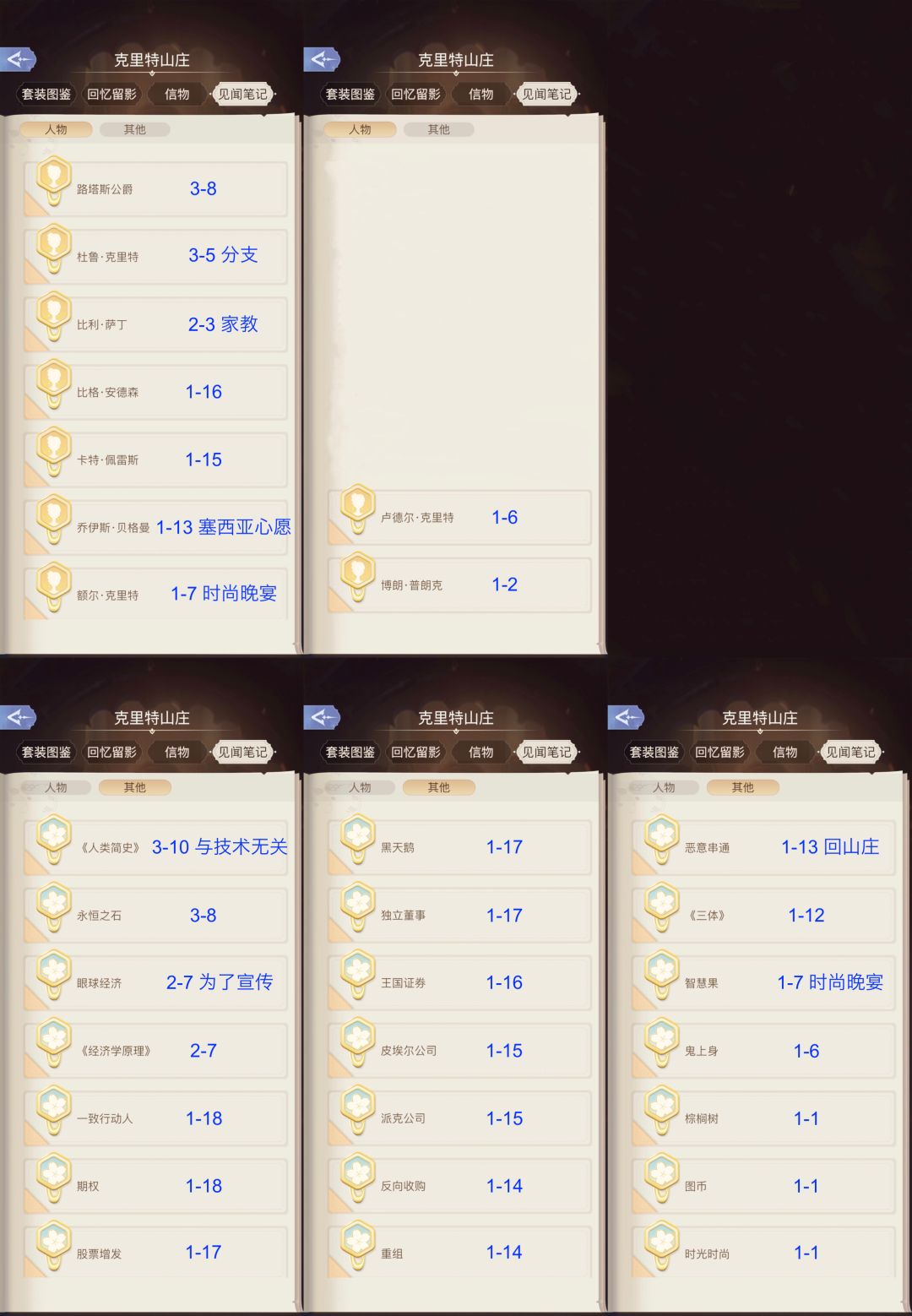 🍀《克里特山庄》关卡解锁攻略【tiragooen版】 / 必做 / 见闻 / 留影