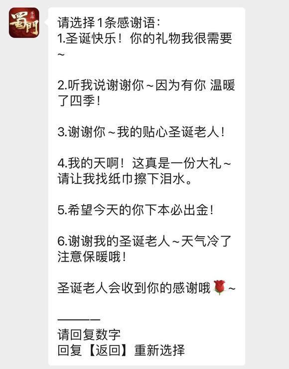 3、如果你是圣诞老人,回复数字选择你想给对方什么礼物;