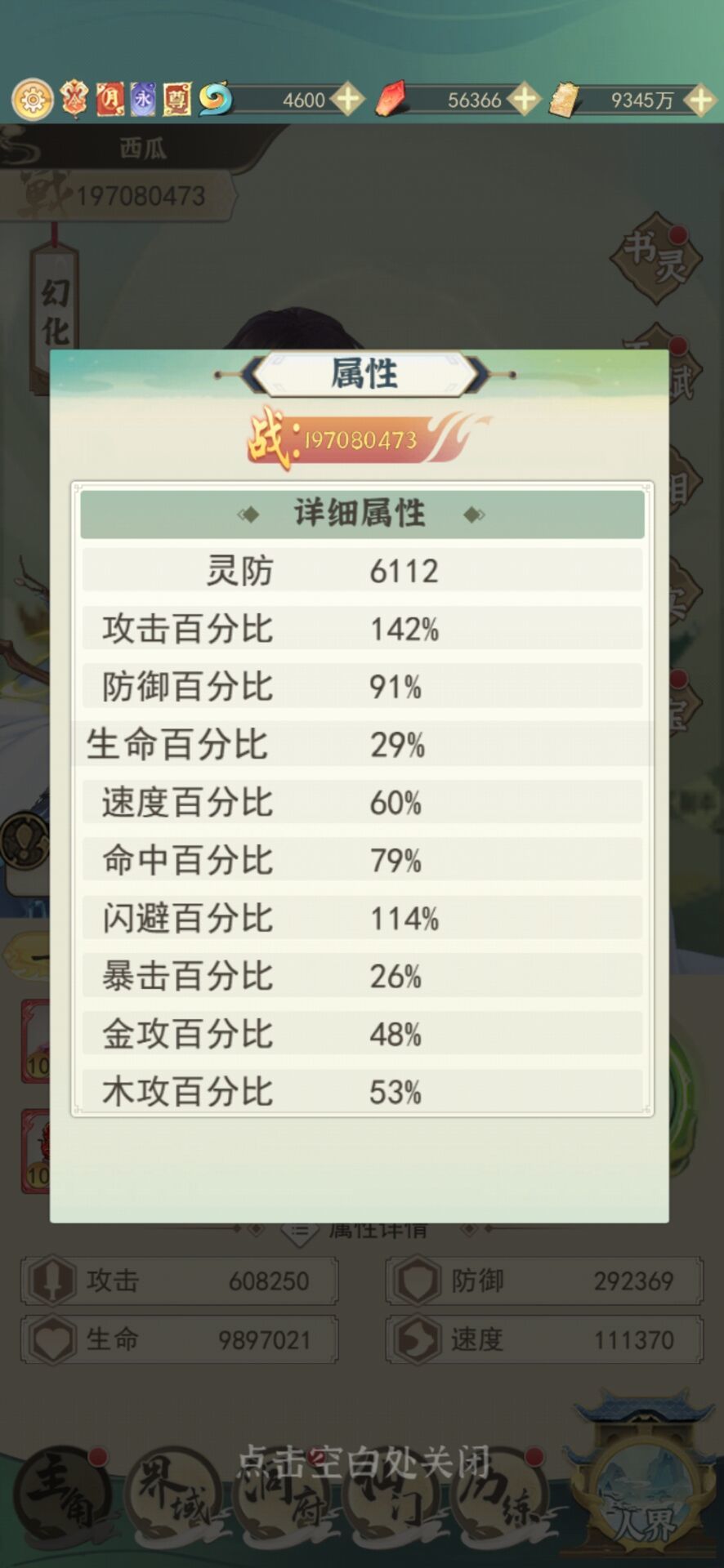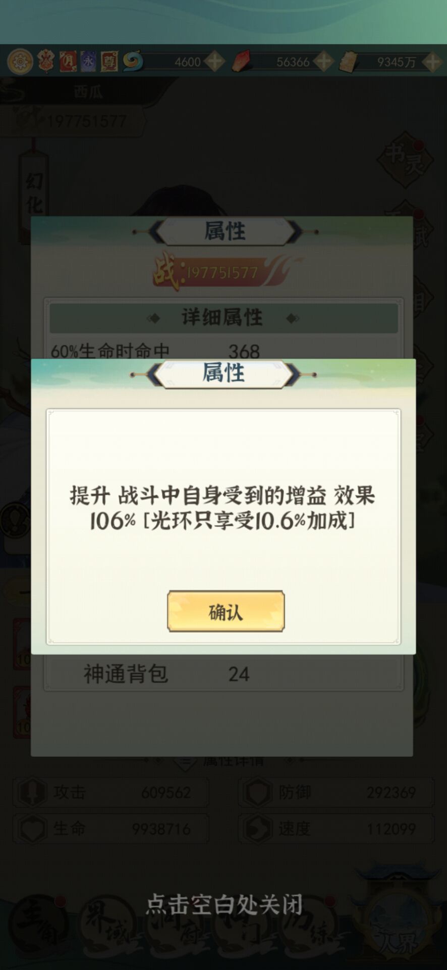 以我的血量属性为例, 我的基础血量为9938716, 血量百分比加成为(称号3%+仙门26.4%=29.4%), 血量宠物光环加成为(4%+6%+10%=20%), 增益强化为106%