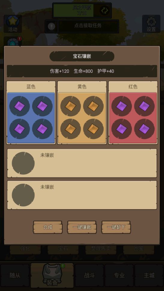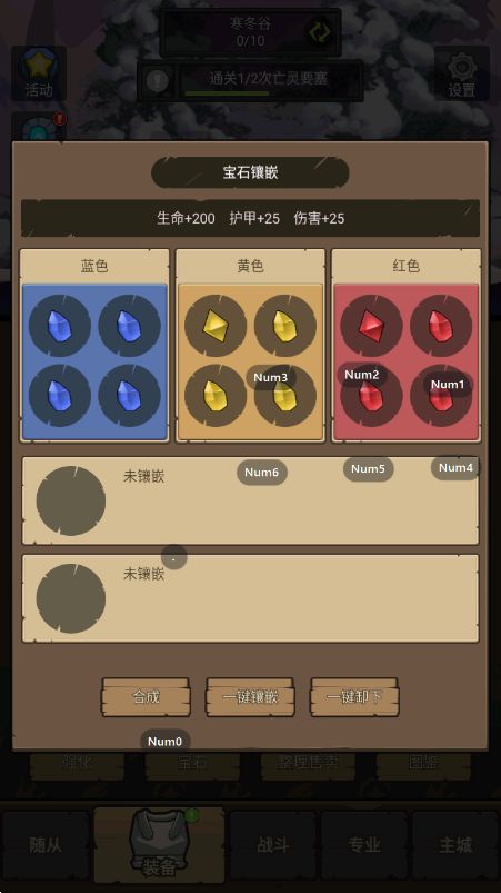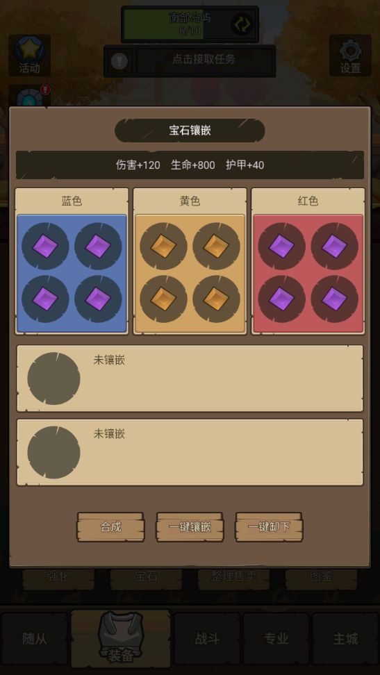 所有单色(红色、黄色、蓝色)宝石,我们只合成到2级,然后合成3级焚石4个、3级紫玉8个。