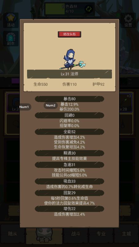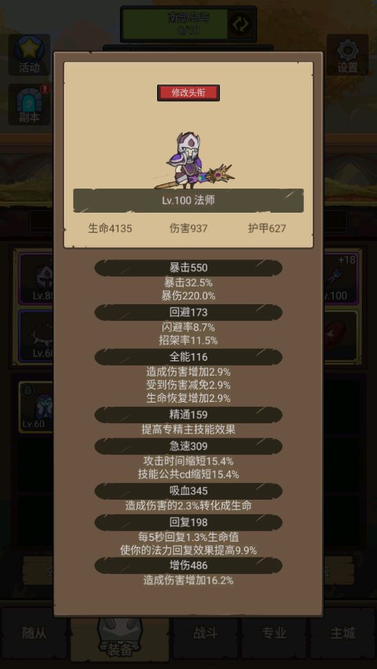 有了宝石和专精的加成,我们的属性变得更加强力。