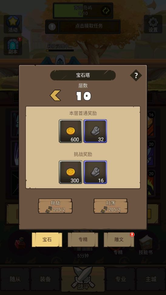 宝石塔10层后,我们通过扫荡来获取大量宝石。