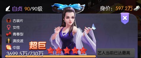 技能特性:参与拍摄古装片时,9档电影额外提升票房约15万