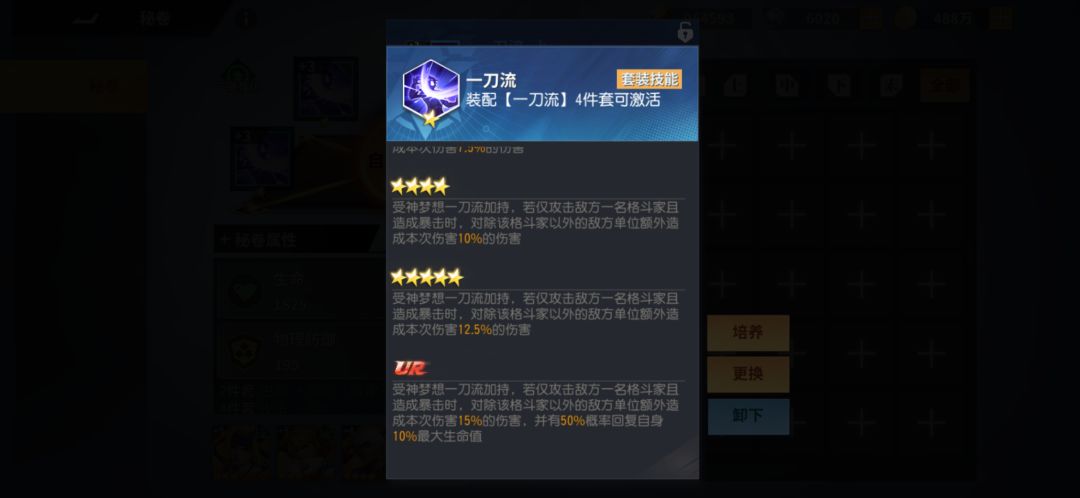 2、一刀流。新版的一刀流不仅在增益上削弱了很多,并且改为只适用于单体攻击且暴击时才能触发,将该次单体伤害的15%扩散为其余群体。(不含原目标)