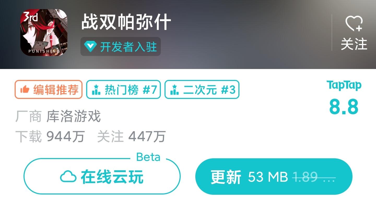 请问一下为啥我的战双明明在游戏里的更新全更了,tap上还显示能更新啊?关键是我现在已经能登能玩了啊?