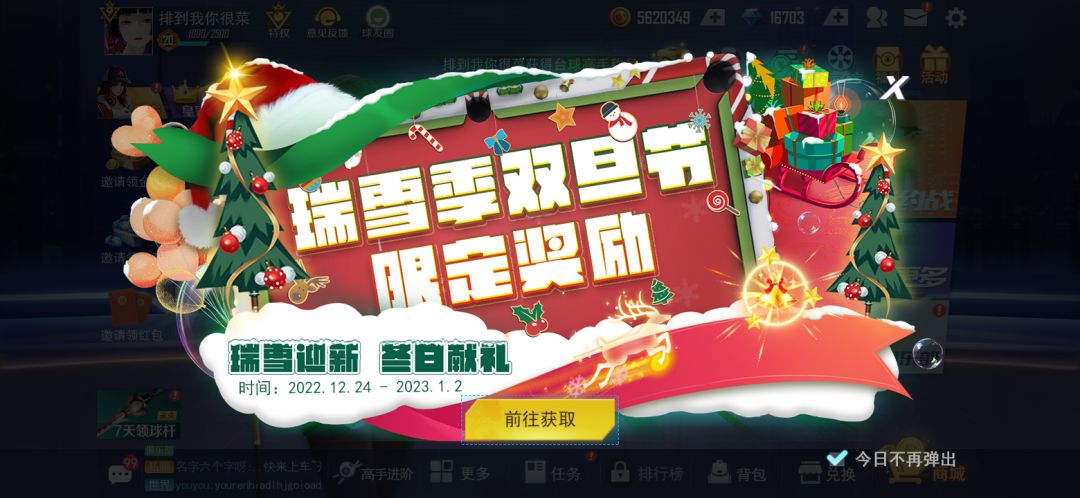 咱们可是来播报《台球王者》新限定活动——瑞雪迎新季双旦节!活动将从圣诞前夜开始持续到元旦结束,福利那叫一个满满当当哦!(*^▽^*)