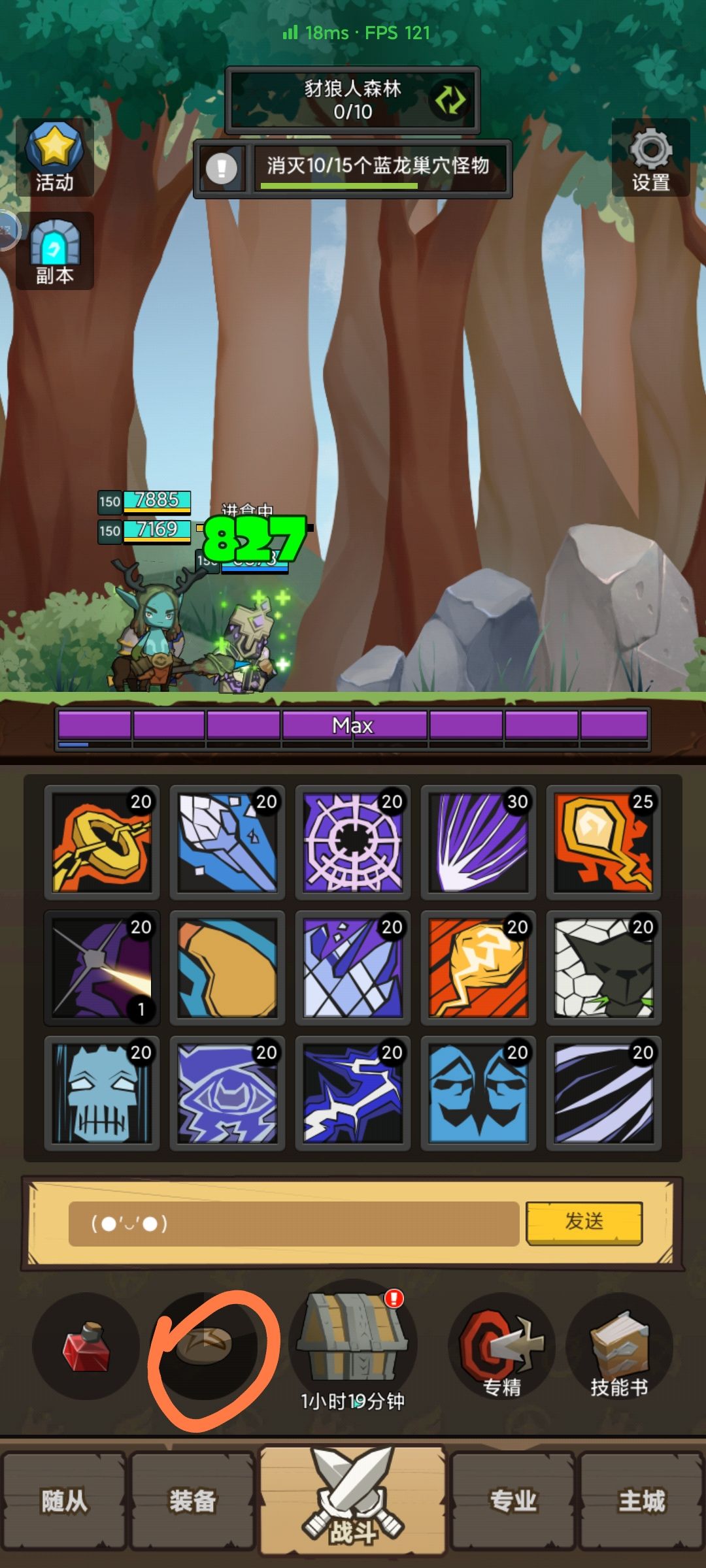 这有个小细节,这个吃东西,可以回血,也可以打完一只怪,立马点吃东西,下一个boss就不会出现,用它来等cd!还能等时间回个蓝!