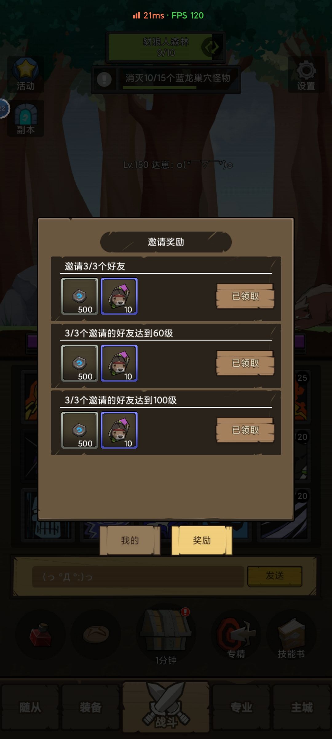 邀请奖励是最多邀请3人,100级,偷偷说其实这个可以自己刷也很快,如果有好基友一起玩那就让他填你的😏