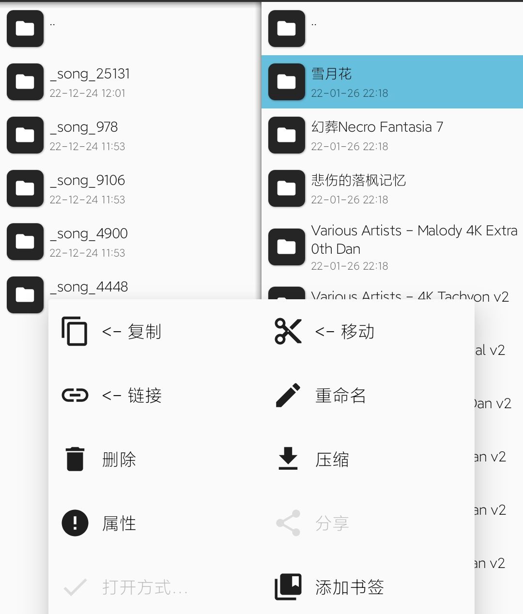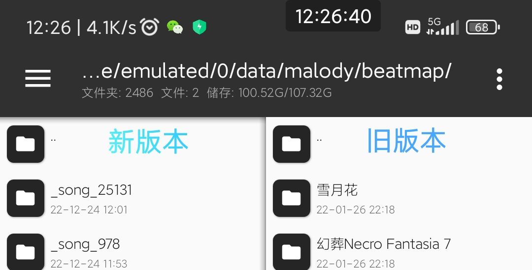 3.然后左滑到或者右滑动或者长按文件夹选择你需要的旧版本的谱子,然后粘贴到新版本的文件夹里面即可