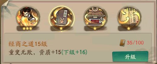 经商之道,这个技能是商贾职业才有的专属技能,可以农业类商铺赚速,需要100本经商之道书籍才可以升级,但是增加的赚速加成不是很高。