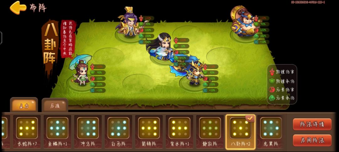 第一回合许诸解阵,张宝技能解阵,争取在第一回合把对面八卦解了,徐晃技能,月英刷新,这里注意月英被动用完技能第二回合一定要刷新出来,不然重开,有金月英当然就没有这种顾虑了,诸葛正常大水或者招降对面黄蛇均可。