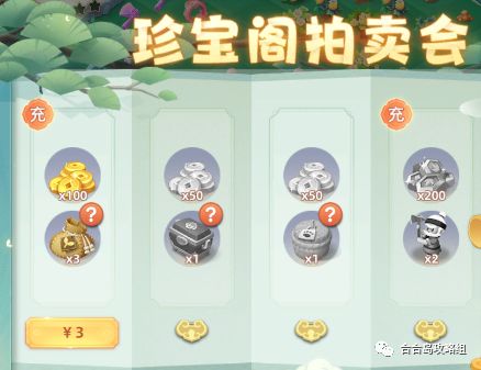 珍宝阁拍卖会充值相应的金额可以获得相应游戏道具哦,包括各种道具、作物、金币和紫晶等等,有能力的岛主可以考虑购买哦。