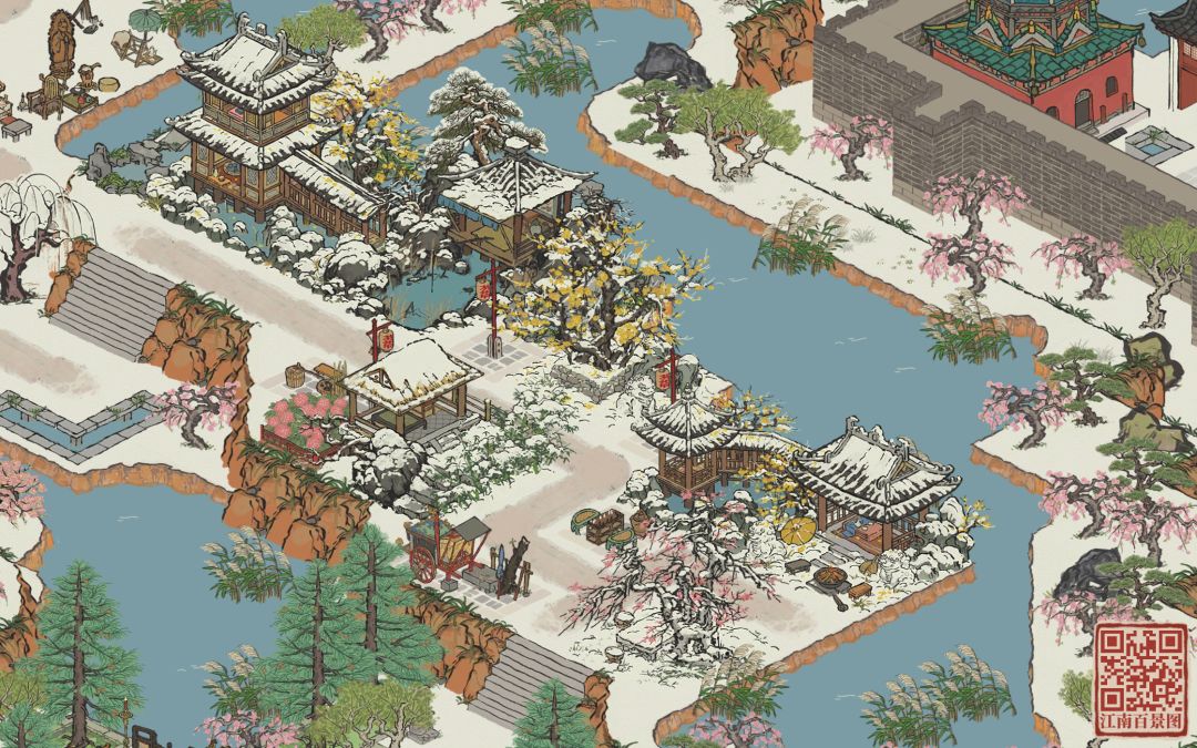 每个州府都尽量安排上冬景,冬景建筑有限。绍兴府是这段时间阳了才有时间布局上。今年的冬景建筑比以往少了像树一样的建筑,可惜!唯一一颗今年冬景的大树是用抽奖换来的,不过策划组将江南百景图所有的树和房子都渲染上冬天的氛围,终于可以应景上😆,大家能看出那个图对应哪个州府吗?