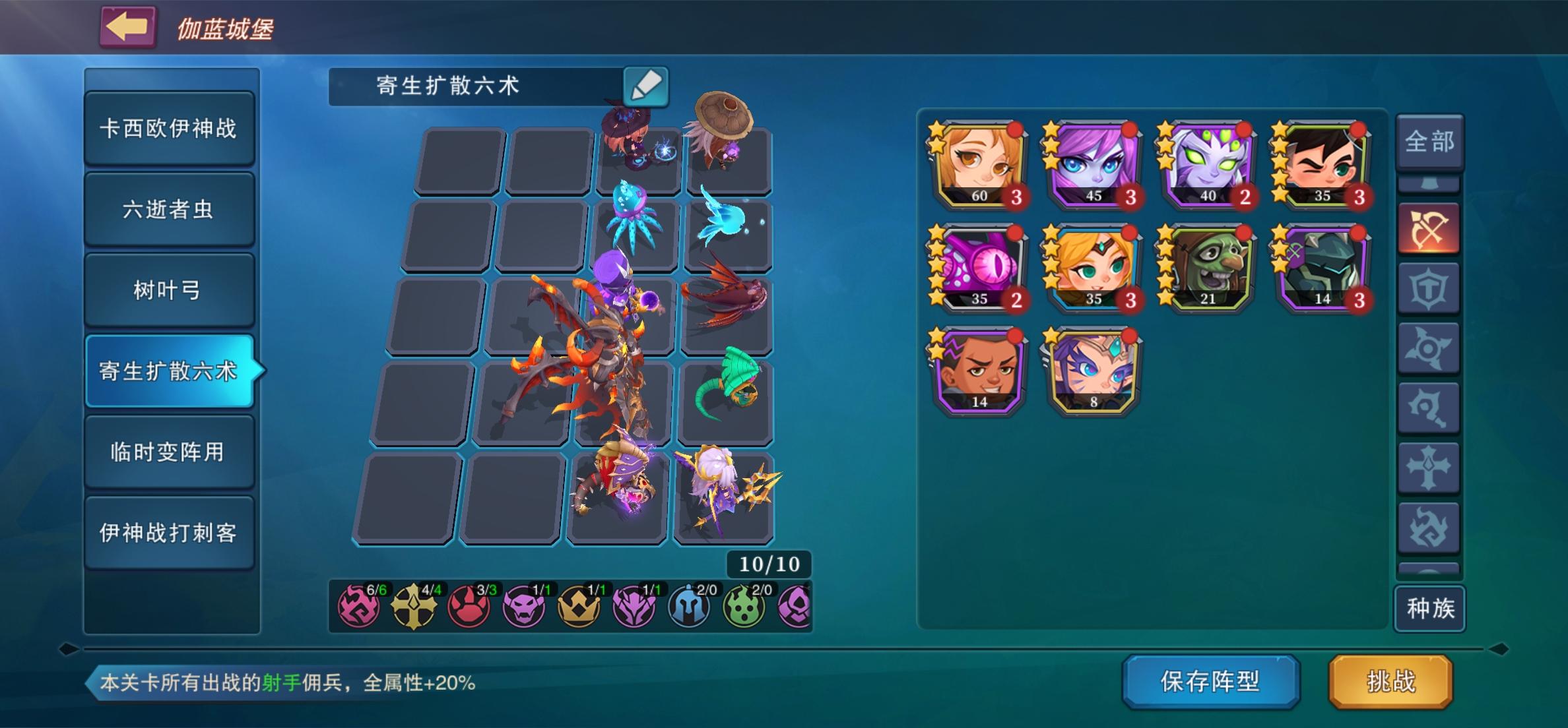 一进虫队配置,主队练度,我这个小树人一进锻9了,火焰天使和许德拉是挂件。基本上就是练度碾压。肉放后面是防刺客,如果扛不住就再拿个肉后置,不打刺客就往第一排站