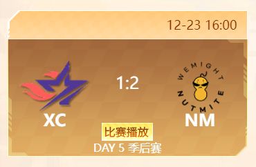 XC在首轮竞速道具双双获胜的优势下,被NM顽强追平比分,鏖战至第三轮个人巅峰车轮战。随后就是NM队长VEGA选手的个人秀,在车轮战中,VEGA凭一人之力击败了轮番上场的XC四人,最终XC只能以1-2的总比分无奈出局。