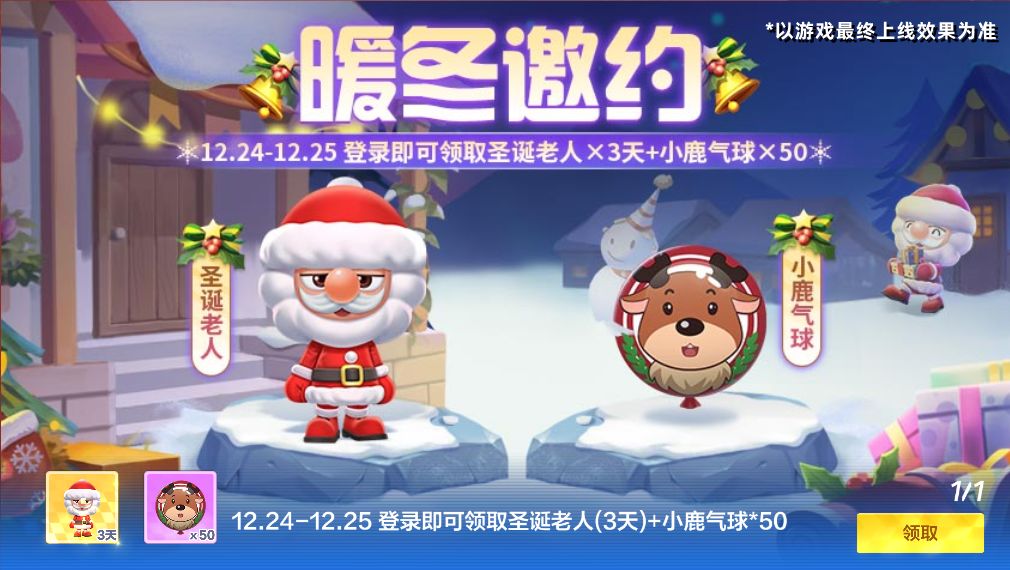 活动中心现已开启【暖冬邀约】登录领好礼活动,12月24日-12月25日,车友们登录游戏即可领取传说车手圣诞老人*3天和小鹿气球*50~