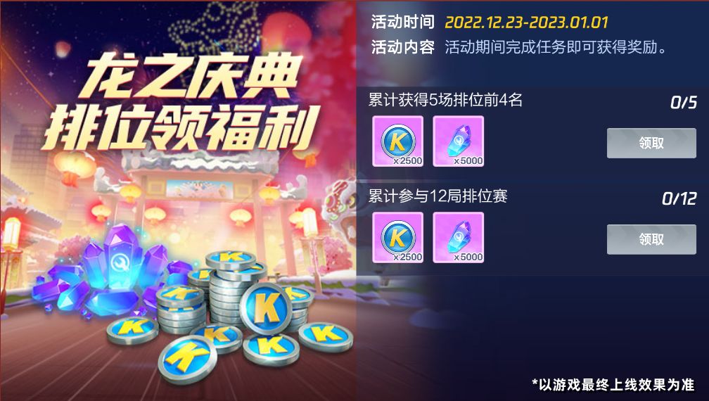 全新S22龙之庆典主题赛季登场,活动期间完成对应排位任务即可领取大量酷币、能量水晶。