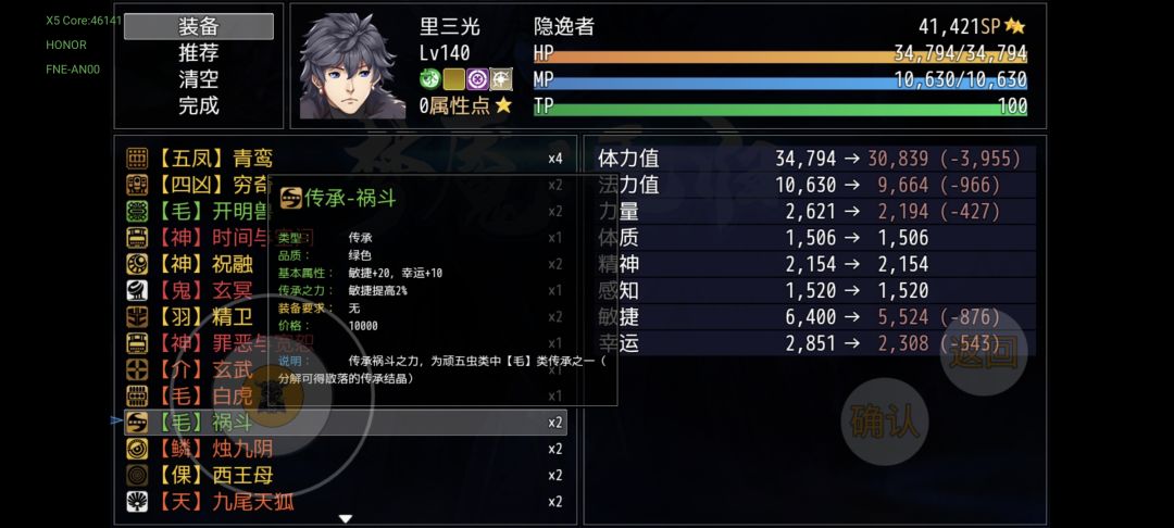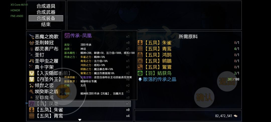 精神系下位传承凤凰和青鸾分别由朱雀和八幕净火天妖掉落,敏捷系传承四凶·穷奇可以在四周目死亡塔的穷奇身上掉落(都猴年马月了)。其余只有自行合成一途(而且这些无法分解,其他的暗金传承都能分解)。