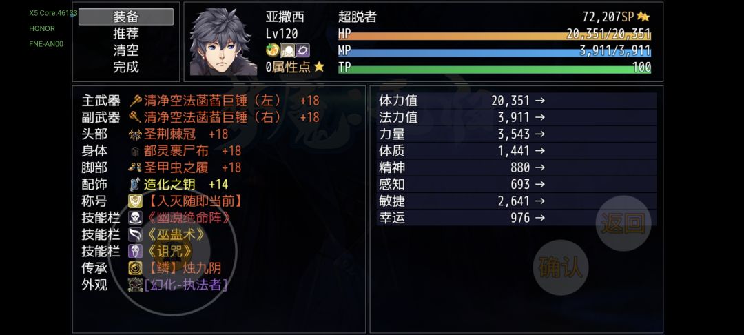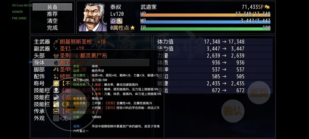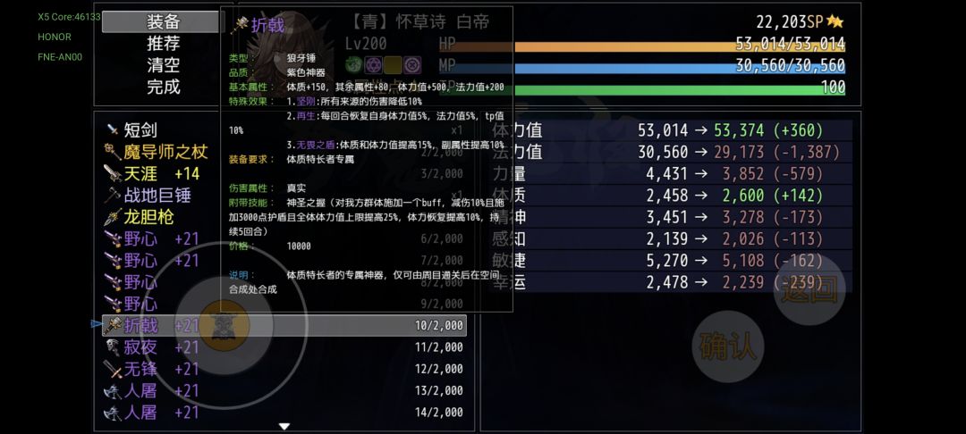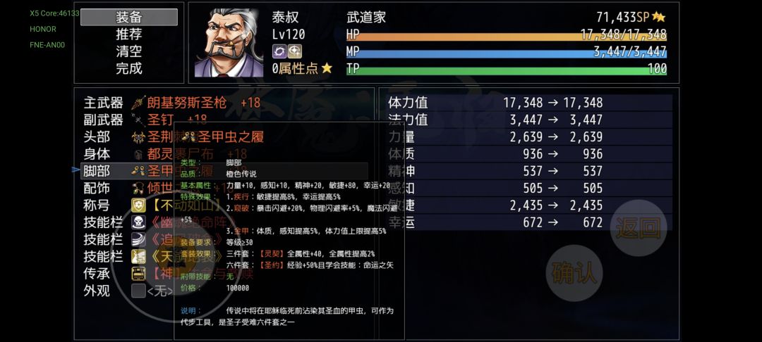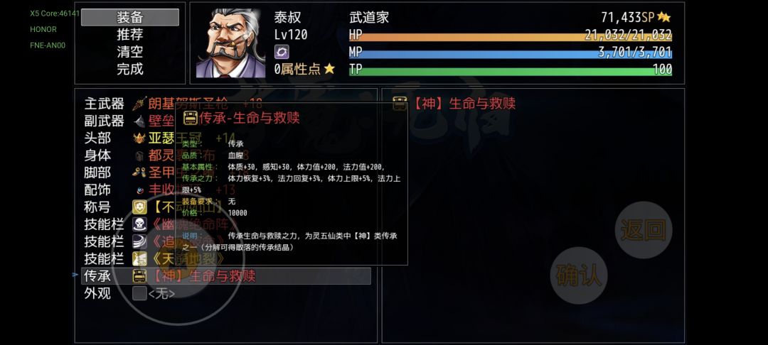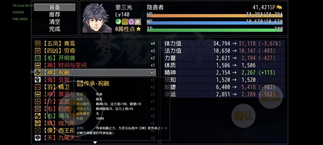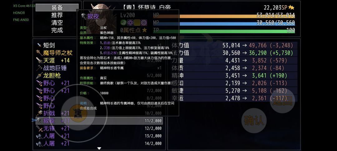 一周目的装备基本上就是这样了,大多数都是过渡装备,对后期构筑没什么影响,仅支持你当前阶段的体验。我先附一套打杨戬的推荐配置(全能)作为一周目的收尾(加点是版本更新造成的bug加点无法更改,具体属性不具有参考价值)