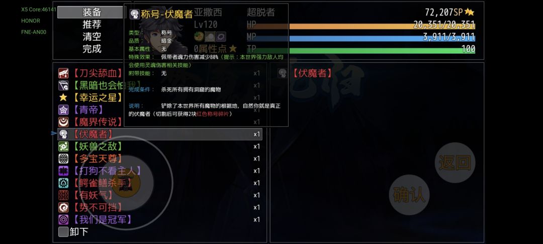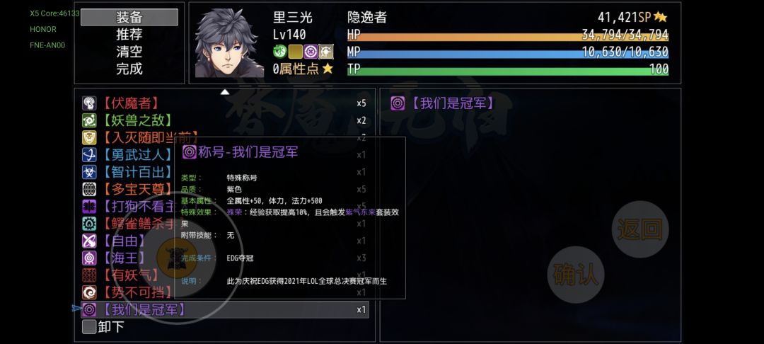 到这里六件套就基本上完结了,接下来讲述的是称号,基本上都是一周目内容(除非到三周目有额外变化)