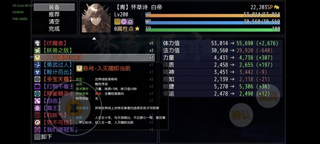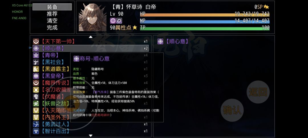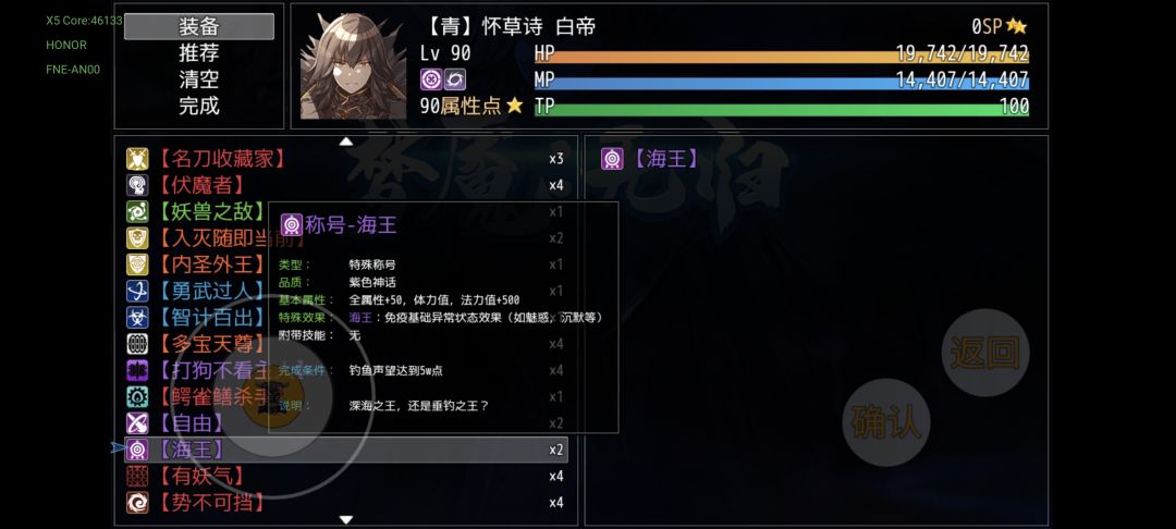 不多说了,首先是免控,属性还全方位碾压之前的所有称号,反正能自由就自由,不能就海王吧(五周目最多才仨自由)。
