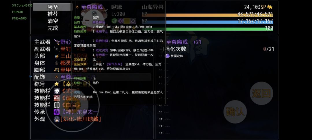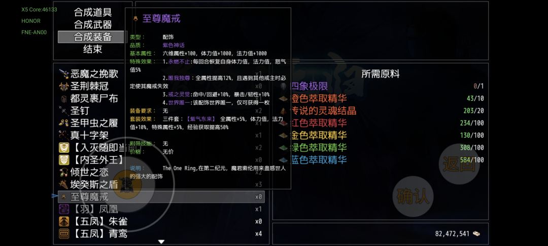 四周目击败青龙集齐地风水火后可合成四象极限,随后合成魔戒,正常情况下仅此一个,最强饰品没有之一,不作任何解释了。