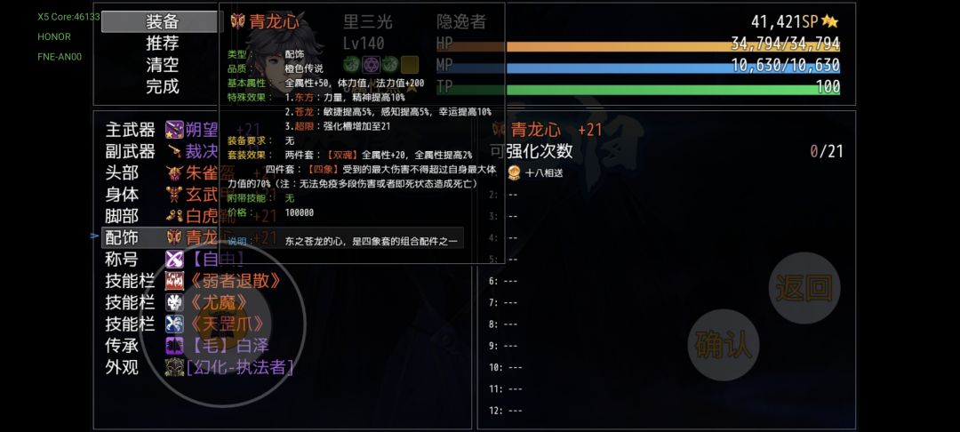 圣兽套 前三件是净白塔商店兑换,一周目一次,青龙心为四周目击败青龙得到,属性是非常拉的,不如圣子的同位置,不要被他的强化+21迷惑,他不配用梦魇之核。但是四周目的四件套效果,希望你能明白“无法超过生命上限的70%”的含义。