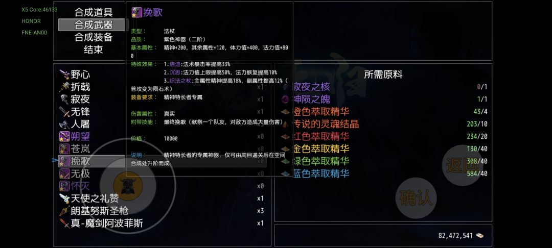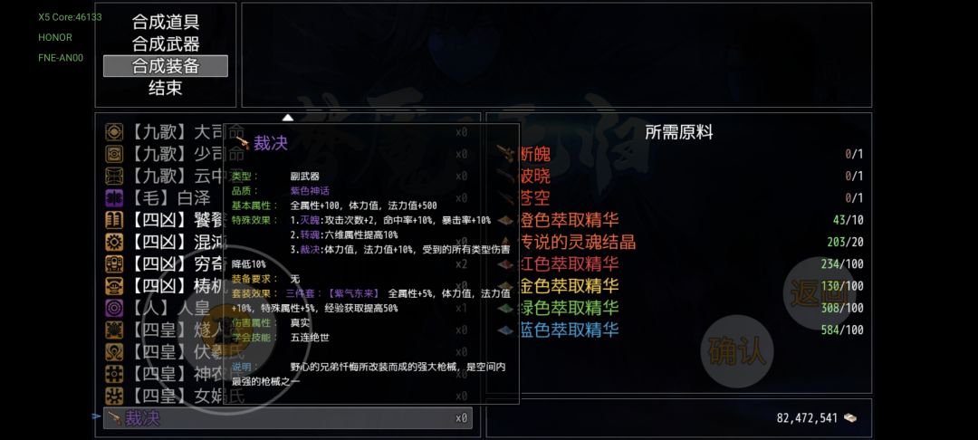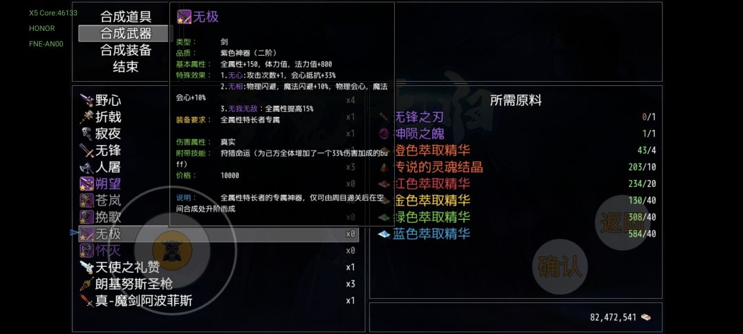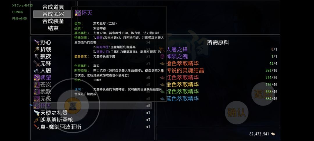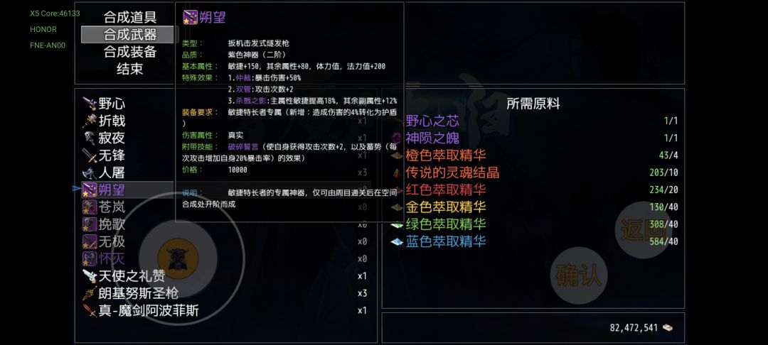 击败青龙后开启的死亡塔挑战,1、8、9层会掉落三把材料枪,10层的星河主宰会掉落配方,和火尖枪一样同样是能加两次普攻,受材料限制,仅4,5周目各可做一把。此时终于能解锁传说中的紫气东来特效了(紫气东来也能增加一次普攻),主武称号魔戒,主副武称号,四周目即可触发两个紫气东来。材料橙色萃取精华,把多周目拿到的双锤和怀草诗赠礼切割了,胜利与誓约之剑以及倚天剑都能切割,一件装备可以切2个,完全不用担心不够用,实在不行每周目兑换圣兽三件套用来切割()