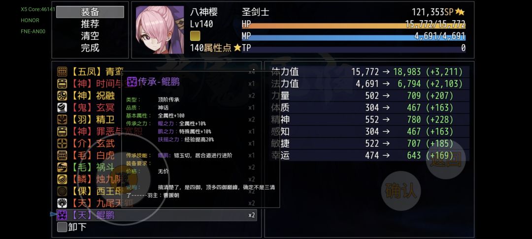 樱的专属传承在三周目第十幕世界任务,锁妖塔地下五层特殊事件“无翼皇帝的传说”选择获得传承获得,或者不选择,在四周目及以后都会在梦魇广场补偿一个。传承“天·鲲鹏”