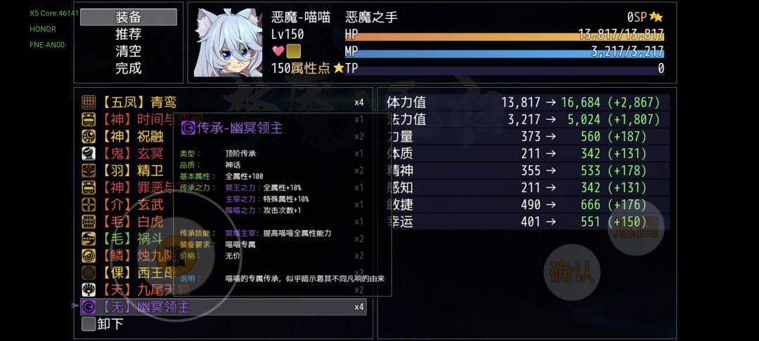 多周目第八幕怀草诗会额外赠送喵喵的专属传承“无·幽冥领主”