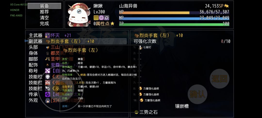 开局我先就我文档版攻略里的极端措施引发的论坛里其他人发表的错误“小贴士”进行修正,一周目第十幕打完再回去找神秘商人属于浪费积分行为,我攻略里说准备5000w积分找神秘商人是为了在一周目未成型时更好的应对杨戬,如果你在打完杨戬再回去买是浪费积分,因为青衣早就在二周目开局补偿给你准备了10个五蕴之石(合300个宝石碎片,用来做三势的二周目宝石碎片是必定够用的)